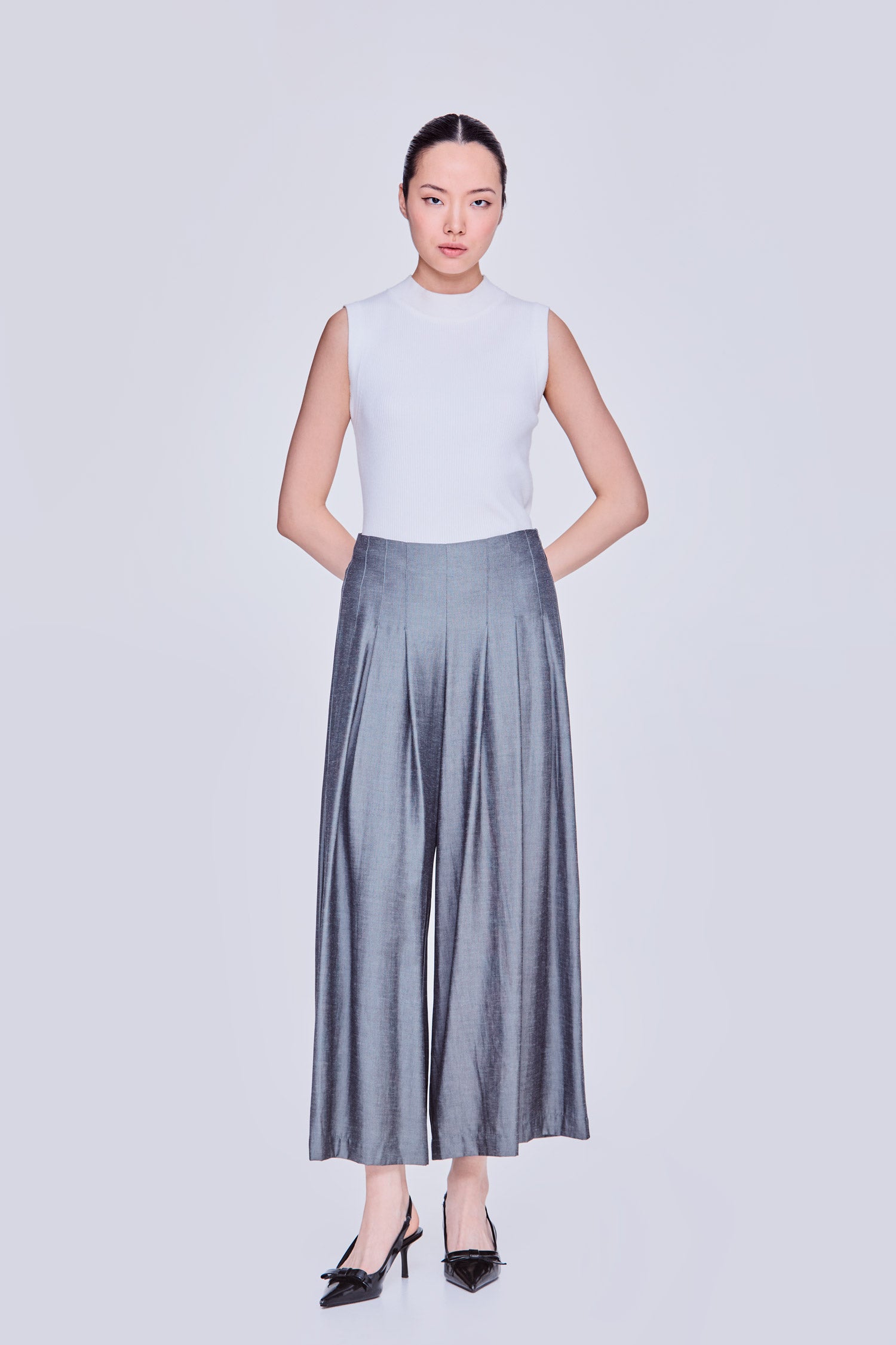Wide leg cut with flattering darts details